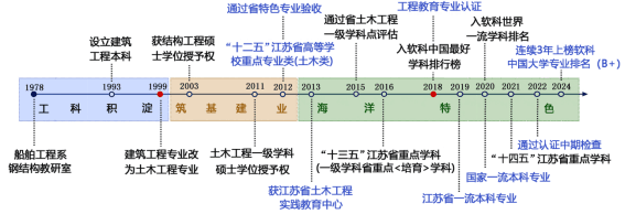 土木工程专业于1993年开始招生,现为国家级一流本科专业建设点,2018年通过国际工程教育认证(华盛顿协议),先后获批江苏省特色建设专业,“十二五”江苏省高等学校重点专业类建设核心专业,江苏省土木工程实践教育中心。2024年在软科中国排名中综合评级达到B+,入选江苏省品牌专业三期建设工程。土木工程学科是“十四五”江苏省重点学科,2024年获批土木水利专业学位博士点。